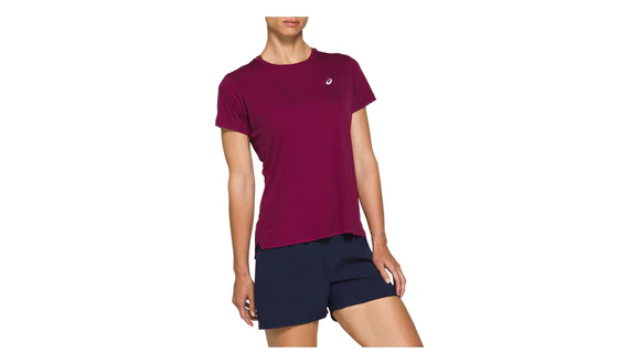 The ASICS women's SILVER SS TOP short-sleeved running top, with flat seaming for reducing chafing, is designed to keep female runners cool and collected all the way to the finish line. It boasts a luxuriously soft and lightweight knit, as well as stretchy self-fabric back neck taping, hexagon hem detail, reflective ASICS branding and a DNA back stitch.